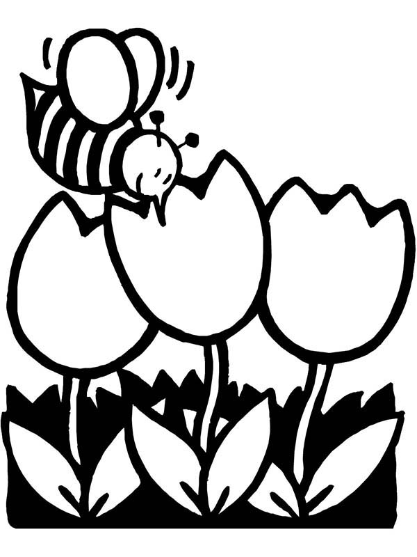Greetings people, our latest update coloring picture that your kids can Have fun with is Bee On Tulips Flower On Spring Time Coloring Page, posted on Spring category. This particullar picture meassure is around 600 pixel x 800 pixel with approximate file size for around 75.23 Kilobytes.