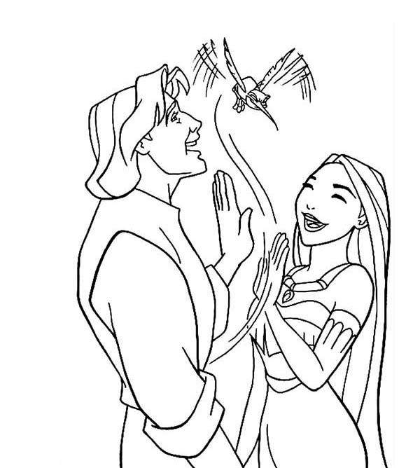 Hi there people, our todays latest coloring image that your kids can Have fun with is Pocahontas And John Smith Play With Flit Coloring Page, published in Pocahontas category. This particullar image dimension is about 600 pixel x 668 pixel with approximate file size for around 76.62 Kilobytes.