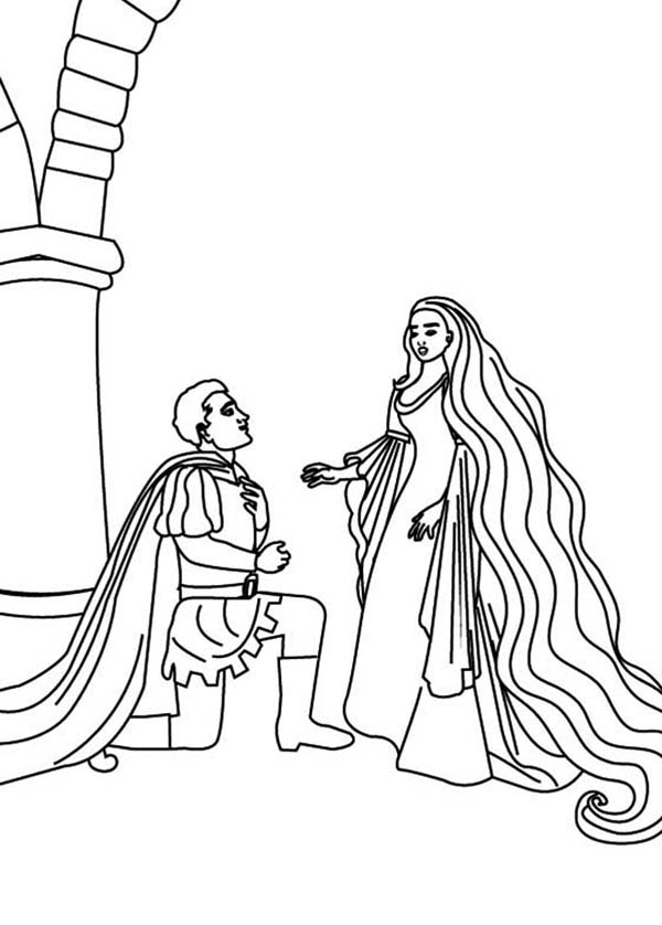 Good day people, our todays latest coloring picture which your kids can Have a good time with is Prince Bend To Rapunzel Coloring Page, posted under Rapunzel category. This below picture height & width is about 600 pixel x 838 pixel with approximate file size for around 72.58 Kilobytes.